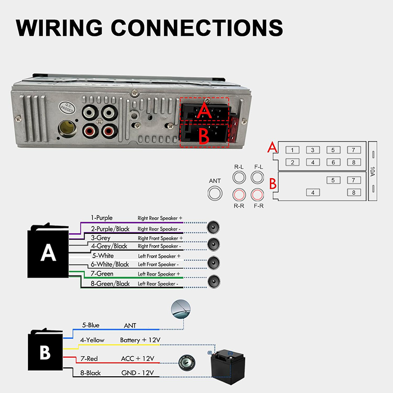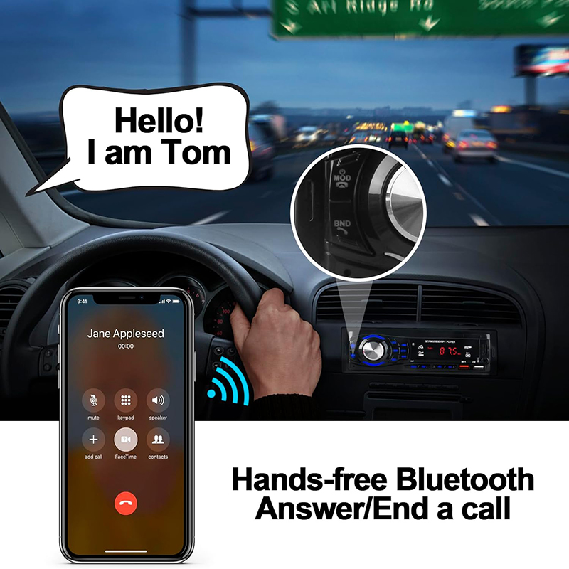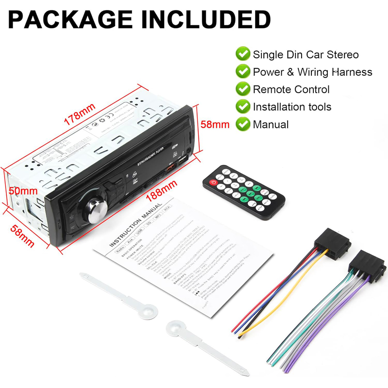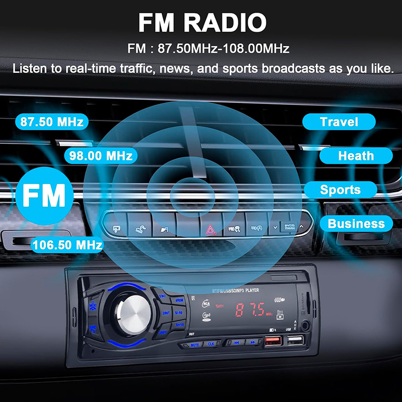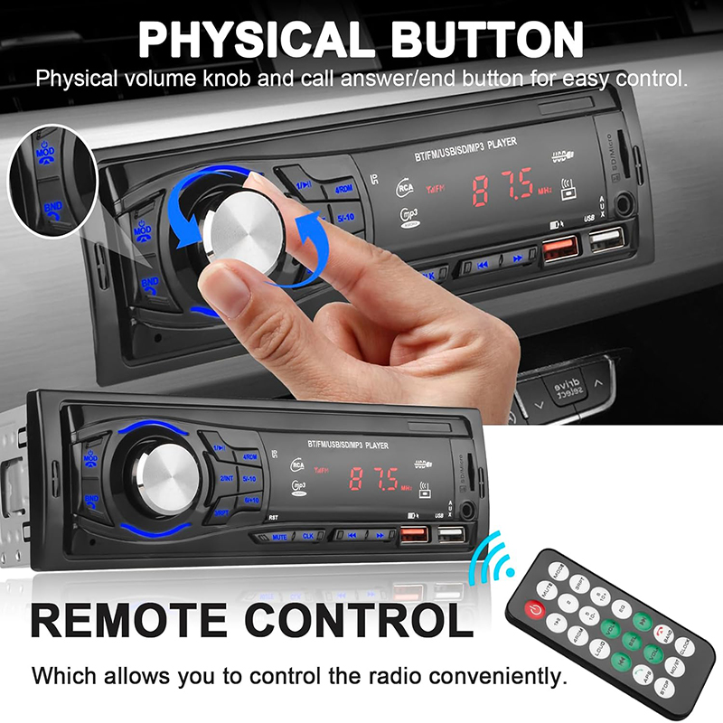 Supports Bluetooth music and hands-free calling; High quality digital stereo FM radio, can search channels automatically or manually, radio frequency: 87.5 ~ 108 MHz, 18 radio presets, you can listen to news, music, weather forecast at any time and other information. Support USB/SD card/auxiliary input and also support remote control, which is convenient for backseat staff to control the volume and play/pause music.